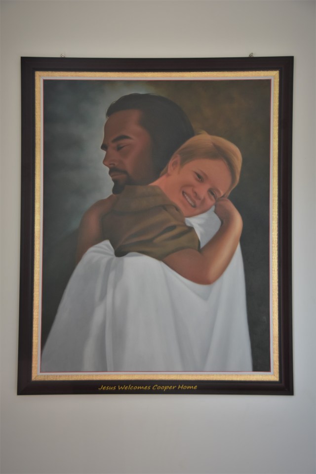 In the entryway of the school is a painting that my wife Noit and I commissioned. This painting depicts the moment when Cooper was welcomed to his eternal home by Jesus. A short article written by Omar Garcia, Kingsland’s missions pastor, is translated in Khmer and flanks the painting of Cooper.