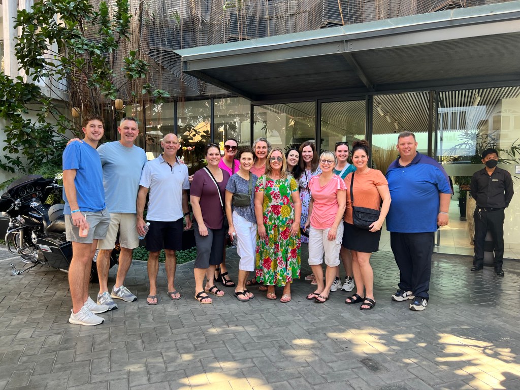 Our team arrived refreshed and ready to go on Friday afternoon. We flew Eva Air from Houston through Taipei which shaved off over 10 hours from our typical travel route and allowed us to hit the ground in Phnom Penh ready to soak in the sights and sounds of this familiar country. Our team this year is made up of 14 people, seven of which have never been to Cambodia and one is our dear friend Nel from Australia whom we met in Poipet in 2020.